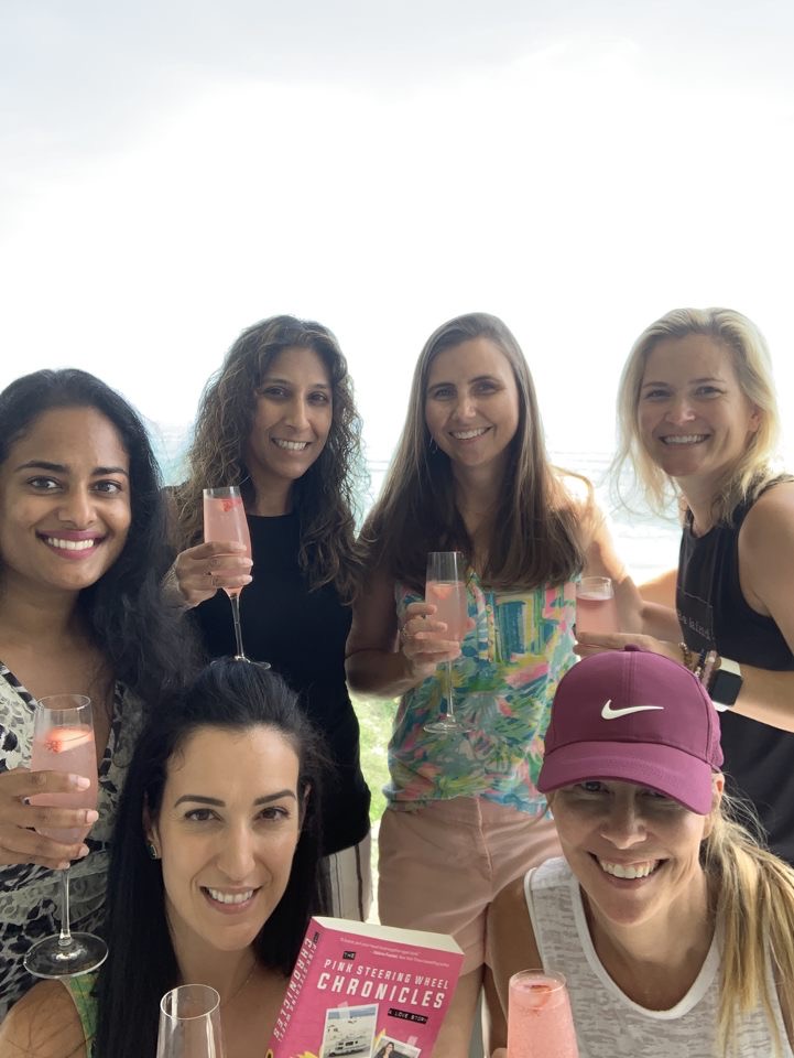 Our first in-person, outdoor, socially distanced book club meeting! We had pink mimosas and big smiles on our faces. Super bummed that Mica could not be with us because she had to work…boo!